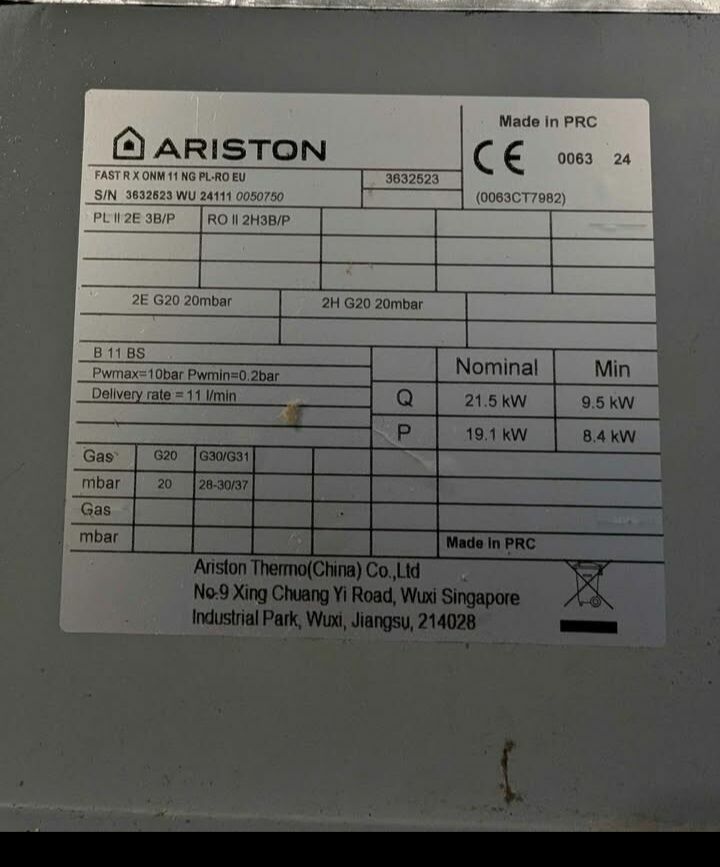 Używany podgrzewacz wody gazowy marki Ariston. Urządzenie jest w idealnym stanie technicznym i gotowe do użytku. Posiada dwa pokrętła regulacyjne umożliwiające precyzyjne ustawienie temperatury wody. Solidna obudowa zapewnia długą żywotność. Idealne rozwiązanie do Twojego domu lub mieszkania.Kupiony jako nowy ok 1, 5 roku używany , ponieważ zmienł się u mnie system grzania jest mi on zbędny .