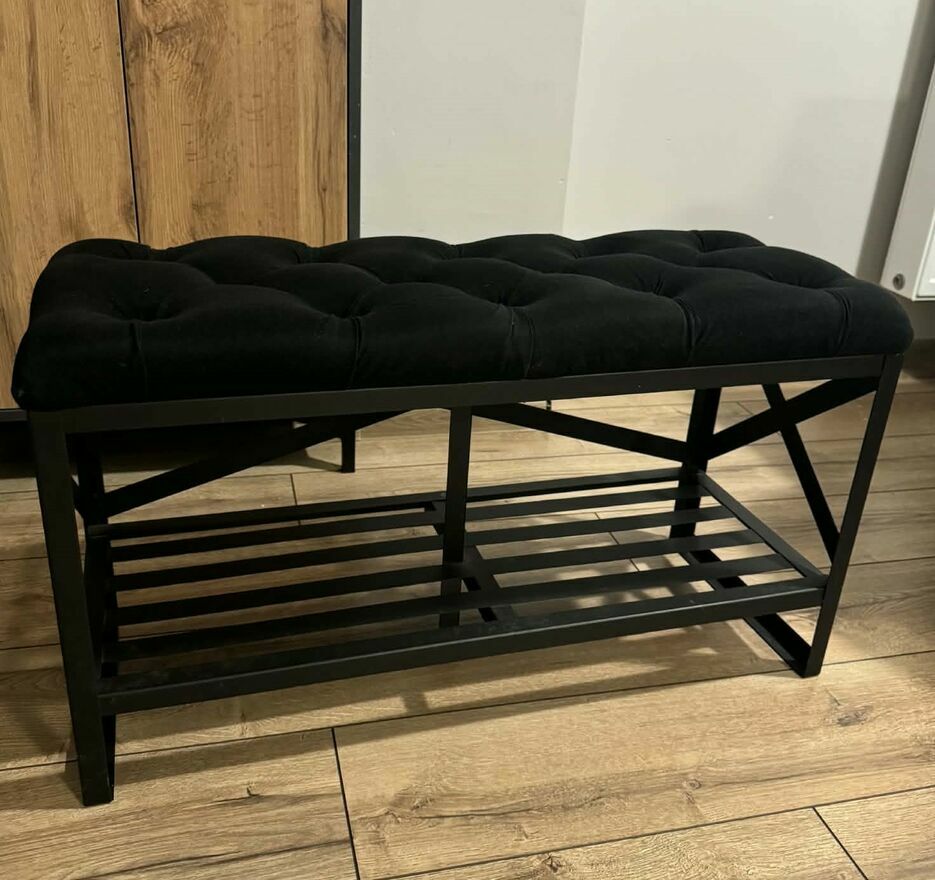 Witam, na sprzedaż mam półkę na buty z materiałowym siedziskiem o wymiarach 80x30x45.Półka w stanie bardzo dobrym, z filcami pod spodem żeby nie rysować podłogi, możliwa wysyłka. Dorzucam gratis wieszak na kurtki.